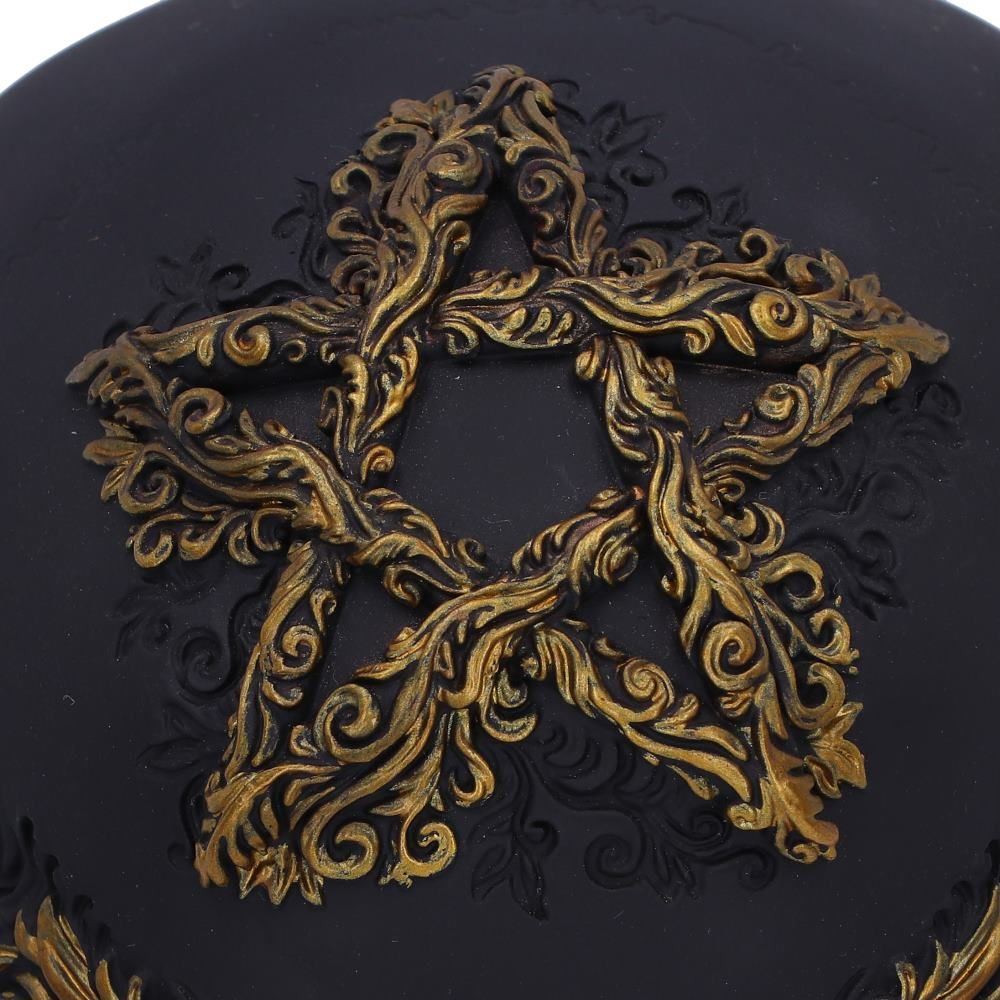 Nemesis Now Divine Demise SkullUnveil the perfect fusion and darkness and opulence with this captivating Divine Demise skull. Featuring the allure of a mystical pentagram intertwined with swirls of gold detailing, this skull embodies the duality of life and death, darkness and luxury. Cast in the finest resin before being expertly hand-painted, this Divine Demise Skull will make a statement in any space.This Skull Measures Approximately: 6.10 Inches Tall.