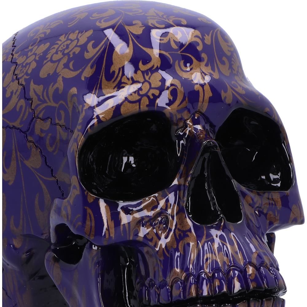Nemesis Now Indigo Elegance SkullFeaturing a lustrous purple finish that catches the light, creating an enchanting play of colors. Adorned with intricate gold patterns, this skull embodies a perfect balance between darkness and opulence, making it a striking addition to any home decor or skull collection.This Skull Measures Approximately: 7.28 Inches Tall.
