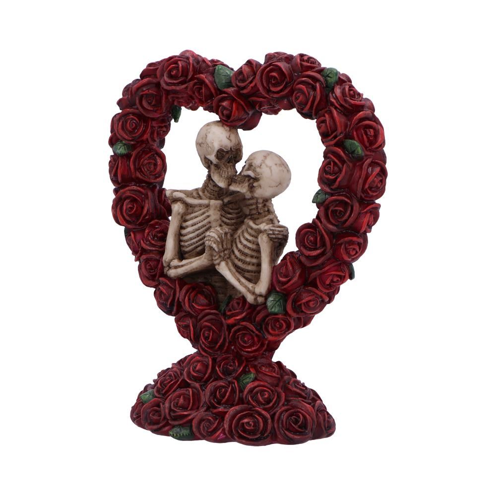 Nemesis Now To Have and To Hold Skeleton Lovers FigurineBehold the To Have and To Hold, an exquisite 13.3cm ornament that seamlessly combines romance with the macabre. This unique piece showcases a cluster of roses intertwined to form a heart shape, symbolizing love eternal, amor aeternus. Within this floral embrace, two skeletal figures emerge, deeply in love, their hands entwined and bodies entangled in an eternal kiss. Crafted from the finest resin, this ornament is a testament to meticulous artistry and attention to detail. The roses and skeletal figures are hand-painted, bringing to life the delicate balance between love and the macabre. Ideal for enthusiasts of the dark and romantic.This Item Measures Approximately: 5.11 Inches Tall.