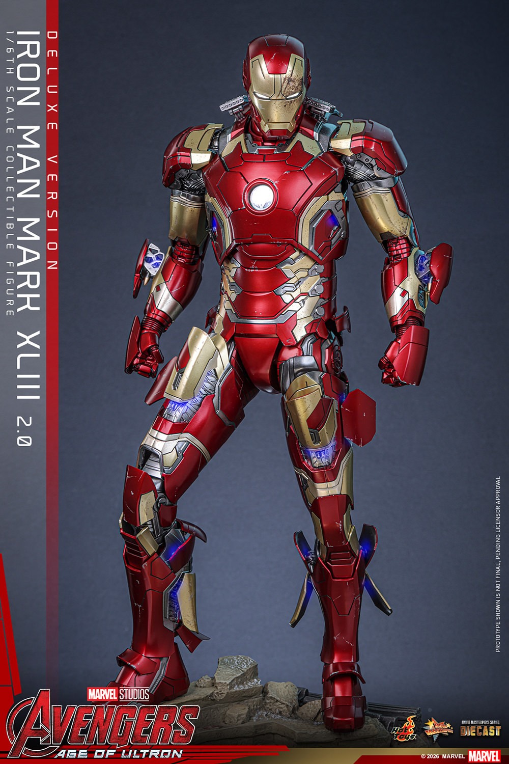 Serving as the perfection of Tony Stark’s armor engineering during the Avengers: Age of Ultron era, the Mark XLIII signaled a return to the definitive red and gold palette. From spearheading the assault on the HYDRA research base to standing as the frontline defense against the mechanical swarm of Ultron, this suit represents a pivotal moment in MCU history.
